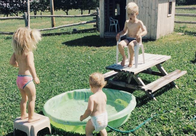 Depuis un mois, nous avons une superbe stagiairE française qui aide sur la ferme. Une jeune française qui rit bien de nos accents et qui se doute que nous rions d’elle en retour (elle s’en doute parce qu’elle ne semble pas toujours nous comprendre). Une jeune française, Marie son petit nom, qui vient faire le plein de souvenirs québécois. Et sérieusement, si vous voulez des souvenirs mémorables vous n’avez qu’à faire un petit tour par chez nous, on ne vous manquera pas. Marie, donc, se laisse promener par moi dans ma superbe Cadillac pour se rendre à la fameuse pratique de soccer à Zack (celle qui avait été annulée sans que je ne m’en rende compte…). C’était une grosse journée de chaleur, un peu comme celle que nous sommes en train de vivre. Un beau 35 degrés Celsius.